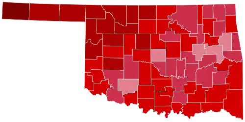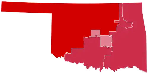 With an extremely socially conservative electorate, Oklahoma has in recent years become one of the most Republican states in the nation. For the third cycle in a row, the Republicans won over 65% of the vote and swept every single county in the state.
