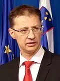 A candidate for the presidency of the European Commission Jean-Claude Juncker wished to have a name of the candidate for the new Slovenian commissioner until 1 August 2014.[5] A huge debate took place right after the election and was a played a part of the pre-election time. Bratušek, who was still a prime minister at the moment, wished to send a name of the candidate by herself, which was strongly opposed by the leader of SMC Miro Cerar. After his victory on the parliamentary elections, he proposed the current commissioner Janez Potočnik as a potential common candidate of the government and the potential new coalition parties.[6] The government placed his proposal on the list of candidates along with the Prime Minister Alenka Bratušek (ZaAB), Karl Erjavec (DeSUS-ALDE) and Tanja Fajon (SD-PES). The actual commissioner withdrew his candidature, as he did not agree with the multitude of the candidates.[7] The self nomination of Alenka Bratušek caused even bigger storm in Slovenian political atmosphere, as many saw her move as an act of private interest. Her action is now under investigation by Commission for the Prevention of Corruption of the Republic of Slovenia (KPK).[8] Driven by decisive victory on the election to European parliament, the Slovenian MEP's members of the EPP, Milan Zver (SDS), Alojz (Lojze) Peterle (NSi), Franc Bogovič (SLS), Romana Tomc (SDS) and Patricija Šulin (SDS) wrote a letter of complaint and concern to Jean-Claude Juncker expressing regret as none of the proposed potential commissioner is not a member of the triumphant EPP.[9] Miro Cerar was displeased with the expulsion of Janez Potočnik from the race for the European commissioner, and announced his reaction as soon as he will be named and confirmed as a Prime Minister-designate on 25 August 2014. Cerar, as the newly named Prime Minister-designate, declared his first action will be a letter to Juncker in which he shall consult the candidate for the new leader of European Commission. In the background a big lobbying battle took place, as Tanja Fajon, strongly supported by PES, has been invited to formal conversation with Juncker. Karl Erjavec also announced a meeting with potential leader of the Commission after the appointment of presidents of the European Council on 30 August.[10] Janez Potočnik returned to the race, after SMC refused co-operation with ZaAB in the new coalition, but was soon backed out by the original trio of candidates (Bratušek, Erjavec and Fajon).[11] Prime minister designate Cerar announced his support to Fajon and Erjavec, but ex prime minister Bratušek did not back down and continued lobbying in the European parliament, looking for support among the European parties.[12] Juncker soon named Bratušek a Vice-President of the European Commission designate and a European Commissioner for Energy designate, but she faced big opposition both in European parliament and in Slovenia, as the people did not support her candidature. She faced a hearing in front of the representatives of the European Parliament on 6. of October. European MP's were not impressed by her presentation and vision for the Energy Union so they refused her as a candidate for the named position and asked Juncker to replacer her or name her on a new position.[13] Under an investigation of Commission for the Prevention of Corruption of the Republic of Slovenia and huge pressure from Slovenia, Bratušek finally resigned as the candidate for Commissioner from Slovenia on 9. of October 2014.[14] New Cerar's government named ex Minister without Portfolio responsible for Development, Strategic Projects and Cohesion Violeta Bulc, who was confirmed as a candidate for European Commissioner for Transport and later also passed the hearing in front of the European MP's.[15] Bulc assumed her new position on 1 November 2014.