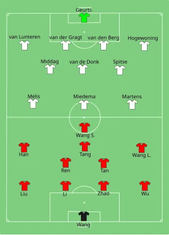 - ^ a b "Tactical Line-up – China-Netherlands" (PDF). FIFA.com. Fédération Internationale de Football Association. 11 June 2015. Archived from the original (PDF) on 2 July 2015. Retrieved 11 June 2015.