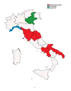 A large round of regional elections were held in Italy on 31 May 2015 in seven of the twenty regions composing the country, including four of the ten largest ones: Campania, Veneto, Apulia and Tuscany. The other three regions holding elections were Liguria, Marche, Umbria.[1]