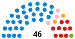 Party Candidates Seats Gains Losses Net gain/loss Seats % Votes % Votes +/−