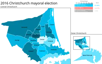 15. ^ "Christchurch City Council 2016 Triennial Elections Mayoralty – votes by ward" (PDF). Christchurch City Council. Retrieved 3 February 2017.