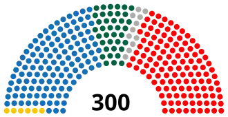 300 members of the National Assembly were elected in the 2016 elections, of whom 253 (84%) were elected from single-member constituencies on a first-past-the-post basis, and 47 (16%) from closed party lists through proportional representation by the Hare quota largest remainder method, in accordance with South Korea's Public Official Election Act.[7][12] In order to win seats through proportional representation, parties needed to pass an election threshold of either 5 single-member districts or 3% of the total list vote.[13]