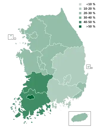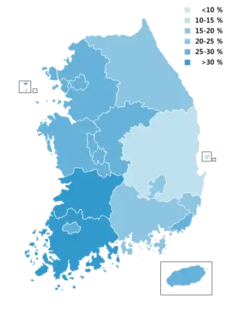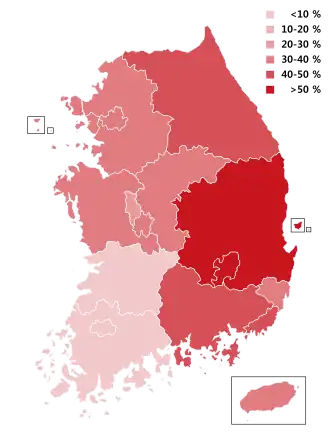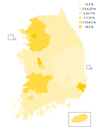 South Gyeongsang 44.0 24.4 17.4 6.5 7.7