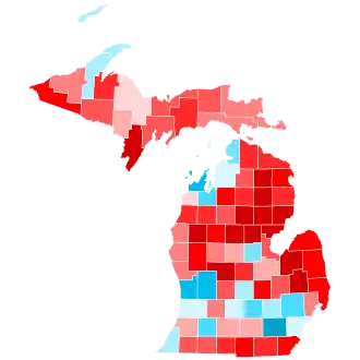 Michigan's largest county, Wayne County, home to Detroit, voted for Clinton by 37 points. She also managed to hold on to suburban Oakland County, the state's second-largest county, where residents tend to be more diverse and more white-collar, where instead third-party candidates gained votes, whilst Trump flipped the state's third largest county, Macomb County, which is home to more socially conservative but economically populist white blue-collar workers. As of the 2024 U.S. presidential election, this is the last time in which Kent County and Leelanau County voted for the Republican candidate, and the only time since 1976 that the Democratic presidential nominee won the nationwide popular vote without winning Michigan.