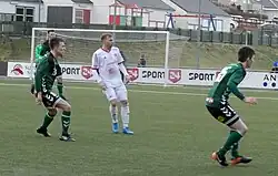 TB/FC Suðuroy/Royn (in green) playing their first match, which was in the first round of Effodeildin against ÍF Fuglafjørður.
