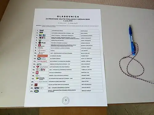 63. ^ "Seznam list kanidatov - DZ 2018 | Državna volilna komisija". Državna volilna komisija. Archived from the original on 27 April 2018. Retrieved 26 April 2018.