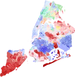 A total of 17 candidates had their petitions to get on the ballot approved by the Board of Elections.[4] Originally, only 16 candidates were approved, but an appeal by minor candidate Helal Shiekh was successful and he was placed on the ballot.[4] The large field of candidates, featuring several prominent politicians, divided the New York City Council, with few members making endorsements as they had good relations with several different candidates.[22] In December 2018, several ballot initiatives were passed in New York City that made it substantially easier for candidates to publicly finance their campaigns.[23] This development was viewed as harming Mark-Viverito's campaign, as under the old financing rules she had had a large fundraising advantage over all other candidates, due to her several high-profile campaigns for the City Council.[23] Mark-Viverito's campaign also suffered from many left-wing groups, which had previously supported her, becoming disillusioned with her as a result of her tenure as City council speaker, where she had compromised on reforming the New York Police Department and had closely collaborated with Mayor Bill de Blasio on controversial rezoning decisions.[24]