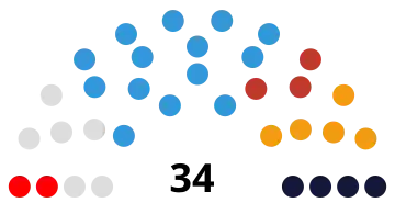 A new electoral system was introduced prior to the elections, introducing a mixed electoral system, with 17 of the 34 seats elected by proportional representation in a single nationwide constituency, and the other 17 elected by first-past-the-post voting in single member constituencies. Between 2004 and 2014, all seats were elected by proportional representation.[2]
