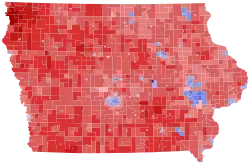 Most experts and pollsters considered this race and the concurrent presidential race as a tossup due to incumbent president Donald Trump's low approval ratings and Ernst's own popularity dropping in polls, partly due to a viral moment in a debate where she did not know the break-even price for soybeans.[2] Despite this, Ernst was reelected by a larger-than-expected 6.6 points, while Trump simultaneously won the state with a bigger yet similarly unexpected margin of victory. Ernst carried an overwhelming majority of the state's counties including many rural ones, while Greenfield carried only eight counties: Polk, Linn, Scott, Johnson, Black Hawk, Story, Cerro Gordo and Jefferson.[3]