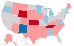 In the 2014 United States Senate elections, the last regularly scheduled elections for Class 2 Senate seats, the Republicans won nine seats from the Democrats and gained a majority,[8] which they continued to hold after the 2016 and 2018 elections.[9][10] Before the elections, Republicans held 53 seats, Democrats held 45 seats, and independents caucusing with the Democrats held two seats, neither of which were up for re-election.[11] Including the special elections in Arizona and Georgia, Republicans defended 23 seats, and the Democrats defended 12.[12]