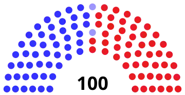 Republicans defended 23 seats, while Democrats defended 12.[12] Each block represents one of the 100 Senate seats. "D#" is a Democratic senator, "I#" is an independent senator, and "R#" is a Republican senator. They are arranged so that the parties are separated, and a majority is clear by crossing the middle.