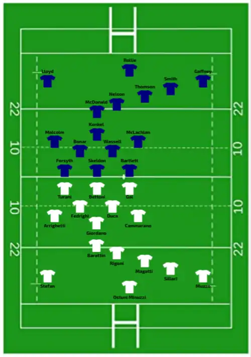 | 21:00 CET (UTC+01:00) | Try: Forlani 5' c Banet (2) 17' c, 32' c Annery 44' c Penalty try 78' Sansus 80' +1 c Con: Trémoulière (4/4) 6', 18', 33', 45' Bourdon (1/1) 80' +2 Pen: Trémoulière (1/1) 12' |