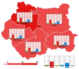 Prior to the election, the Labour Party had control of all five boroughs of the city-region. However, in the 2019 general election, Labour lost four seats in West Yorkshire to the Conservative Party.[16]