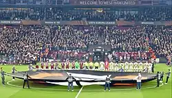 West Ham and Bayer Leverkusen line up before their game at the London Stadium
