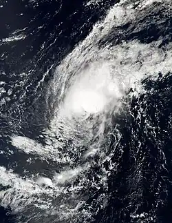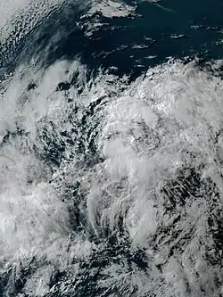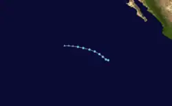 A tropical wave entered the Eastern Pacific on July 16 after moving across Central America.[60] A broad low pressure area associated with the wave formed south of the coast of southwestern Mexico on July 17.[61] The disturbance became better organized by July 20, and at 12:00 UTC, Tropical Depression Four-E formed southwest of the Baja California peninsula.[60] Later that day, however, the depression's structure began deteriorating. It soon lost all of its deep convection,[62] and degenerated into a remnant low by 00:00 UTC on July 22.[60]