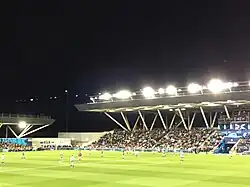 Barcelona's first match against a direct league rival was away at Atlético Madrid on 9 November. Prior to the game, Atlético Madrid were second in the league with the fewest goals conceded, but Barcelona won the hard-fought game while also managing player minutes due to having a Champions League game and a Women's Clásico match later in the same week.[59] Caroline Graham Hansen had a strong game, scoring a goal and providing the assist for Bonmatí to score her 100th goal for Barcelona.[60] In the Clásico against Real Madrid, Barcelona further consolidated their sole ownership of the league with a convincing victory;[61] before the end of the match, Real Madrid fans were loudly calling for manager Alberto Toril's resignation due to their team's clear inferiority.[62][63][61] In front of an Alfredo Di Stéfano Stadium record crowd of 5,210,[63] Barcelona opened scoring within three minutes through Patricia Guijarro, who also scored the second. Toward the end of the match, Putellas scored her ninth Clásico goal to take her to 199 for Barcelona and go clear of Suárez as the third all-time Barcelona goalscorer.[64]
