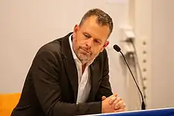 After a rather disappointing 2023–24 season, the Kerala Blasters' quest for their first ever silverware led them to 2024–25 season.[11] The Blasters' 2023–24 season was marked by a roller-coaster journey consisting of injuries and suspensions.[12] Ahead the 2023–24 campaign, the Blasters ended their six-year association with their then-most-capped player at the time, Sahal Abdul Samad, who was involved in a swap-deal with Mohun Bagan Super Giant for the transfer of Pritam Kotal; with the Blasters receiving a reported transfer fee of ₹90 lakhs (US$108,000).[13] The club went to the United Arab Emirates for their final pre-season camp ahead of the league season.[14] The Blasters began their 2023–24 season with the 2023 Durand Cup, in which they were knocked-out of the tournament after finishing third in the group of four.[15] Following the end of his ten-match ban, the then manager of the Blasters, Ivan Vukomanović, returned to the dugout on 27 October 2023 in the match against Odisha FC.[16] The Blasters had a satisfactory end to the first half of the league, as by the winter-breaks in December, the Blasters reigned at the top of the table, spending 45 days at the spot.[17] During the international breaks in January 2024, the Blasters took part in the 2024 Indian Super Cup, but was disqualified from the tournament for yet again finishing third in the group table.[18][19] Coming into the second-phase of the league, an injury plagued Blasters' side coupled with dozens of suspensions, lost their winning momentum, as they ended the regular season fifth on the table.[20] However, the Blasters qualified for the league playoffs for a third consecutive time, meeting Odisha FC in Kalinga Stadium on 19 April 2024, who put an end to the Blasters' season, as the Blasters lost the match two goals to one, thus ending a yet another season without a trophy.[21]