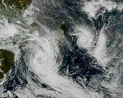 On 12 February, Tropical Cyclone Taliah crossed over from the Australian region at moderate tropical storm intensity, having formed there on 31 January. Almost immediately, Taliah reintensified into a tropical cyclone before weakening into a moderate tropical storm the next day while moving southwest.[80] Taliah then continued on its path while varying in intensity between moderate and strong tropical storm before becoming a post-tropical cyclone on 18 February near 31°S latitude over increasingly cooler waters and showing very sporadic storm activity far from the center. The RSMC La Réunion and the Joint Typhoon Warning Center then ceased their messages.[81][82]
