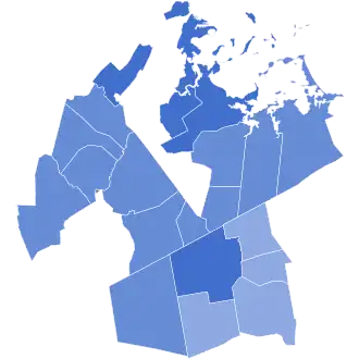 Precinct results McGovern: 50–60% 60–70% 70–80% 80–90% >90% Shea: 50–60% |