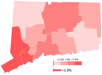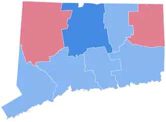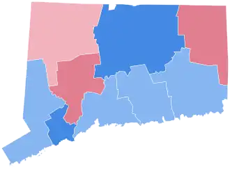 Harris comfortably won the state by 14.5 points as overall turnout decreased by 10.1 points, performing worse than Biden in 2020, but slightly better than Clinton in 2016. Meanwhile, Trump secured 41.9% of the vote to record the best Republican performance in Connecticut since 2004.[3] With this election being the first under the state's new Council of Government system, Harris won 6 and Trump won 3 of the 9 county-equivalents.