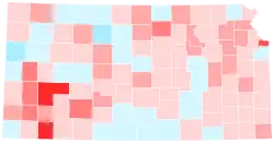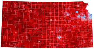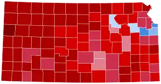 In recent years, Democrats have seen some success in the state, such as defeating the 2022 Kansas abortion referendum and holding the governorship since 2019. This leftward shift has been attributed to the growth of the Kansas City metropolitan area, more specifically Johnson County, the state's most populous, which supported Joe Biden four years prior, the first win for a Democrat in this county since 1916.[25] While Democrats had hoped that their margin of defeat would narrow further after favorable polls and Biden's favorable results compared to 2016, Kansas instead shifted to the right, with Trump improving on his margin[26] and Republicans in the state legislature expanding their supermajorities.[27]
