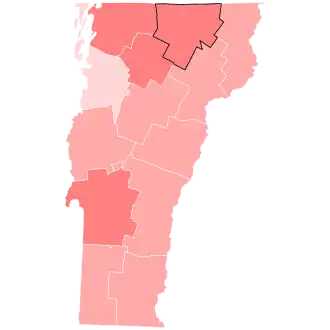 Trump managed to narrowly flip Orleans County, the first time for a presidential Republican candidate since 2000, and also the first time a Republican had won any county other than Essex County since then. Vermont was once again the most Democratic state in the nation, only the second occasion in the state's history (behind 2020) in which it was the strongest for the Democrats,[24] and the first time since 1956 in which it was the strongest state for either party in back-to-back elections.[25]
