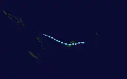 On the 24th of February, Tropical Cyclone Seru formed northeast of Vanuatu. It slowly intensified while tracking south over the next few days, becoming a Category 2 tropical cyclone on the Australian scale.[7] Seru caused minimal damage in southern Vanuatu, and dissipated into a remnant low on the 1st of March.