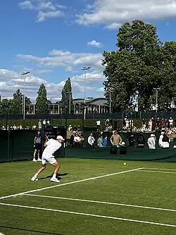 | Players Alastair Gray and Nicolai Budkov Kjær playing at the 2025 Wimbledon Championships Men's singles qualifying. | |