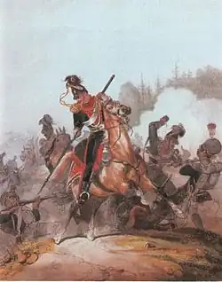 The Garde-Regiments stemmed from the Leib-Ulanen-Eskadron, which was re-titled the Garde-Ulanen-Eskadron in 1810; a second Garde-Ulanen-Regiment was raised in 1819. The line regiments were raised from the Freiwillige and National cavalry regiments of 1813–1815 Freedom War, the Freikorps Lützow, Freikorps Hellwig and the Russo-German Legion. In 1860, besides a 3rd Garde-Regiment, a further four line regiments were formed. In 1856, the third line regiment received the title Ulanen-Regiment König Alexander II von Russland. In 1866, Regiments 13-16 were formed. In 1884, the "West Preussen Ulanen Regiment No. 1" was titled "Ulanen-Regiment Konig Alexander Ill von Russland (West Preussisches) No. 1". In 1889, Kaiser Wilhelm II was declared the Regimental Chief of the "1st Hannoverschen Ulanen-Regiment No. 13" which, on the same day, was re-titled "Konigs-Ulanen-Regiment (1 Hannoversches) No. 13". In 1902, the "Ulanen-Regiment Hennings von Treffenfeld (Altmarkisches) No. 16", was granted the distinction of wearing the cypher of King George of Saxony, and in the next year the "Thüringische-Ulanen-Regiment No. 6", was granted similar-distinction in respect of King Christian IX of Denmark.