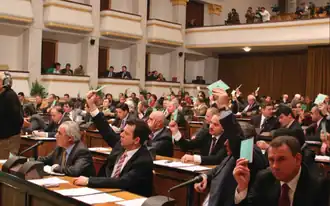 The Twenty-seventh Legislature of Albania (Albanian: Legjislatura e njëzet e shtatë), officially known as the VI Pluralist Legislature of Albania (Albanian: Legjislatura e VI Pluraliste e Shqipërisë), was the legislature of Albania following the 2005 Albanian Parliamentary election of Members of Parliament (MPs) to the Albanian Parliament. The party of the Prime Minister Sali Berisha, PD, obtained majority of 80 deputies. [1][2]