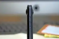 360-degree video is typically recorded using either a special rig of multiple cameras, or using a dedicated camera that contains multiple camera lenses embedded into the device, and recording overlapping angles simultaneously.[4][5] Specialized omnidirectional cameras and rigs have been developed for the purpose of recording 360-degree video, including rigs such as GoPro's Omni and Odyssey (which consist of multiple action cameras installed within a frame), and contained cameras like the Nokia OZO. There have also been handheld dual-lens cameras such as the Ricoh Theta S, Samsung Gear 360, Garmin VIRB 360, and the Kogeto Dot 360—a panoramic camera lens accessory for smartphone cameras.[6][7][8]