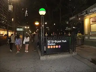 117. ^ Rahhal, Emily; Rosoff, Henry (March 25, 2024). "Subway barriers installed at Bryant Park station". PIX11. Retrieved March 26, 2024.
