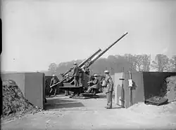 By 1941, after two years of war, Anti-Aircraft Command, tasked with defending the UK against air attack, was suffering a manpower shortage. In April its commander-in-chief, Lieutenant-General Sir Frederick 'Tim' Pile, proposed to overcome this by utilising the women of the Auxiliary Territorial Service (ATS). The ATS was by law a non-combatant service, but it was decided that Defence Regulations permitted the employment of women in anti-aircraft (AA) roles other than actually firing the guns. They worked the radar and plotting instruments, range-finders and predictors, ran command posts and communications, and carried out many other duties. With the increasing automation of heavy AA (HAA) guns, including laying, fuze-setting and loading under remote control from the predictor, the question of who actually fired the gun became blurred as the war progressed. The ATS rank and file, if not always their officers, took to the new role with enthusiasm and 'Mixed' batteries and regiments with the ATS supplying two-thirds of their personnel quickly proved a success.[1][2][3][4]