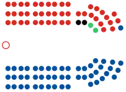 The 44th Parliament was the last to be elected under the old FPP electoral system, with voters approving a change to MMP at the same time as they voted in the 1993 elections. As such, the 44th Parliament saw a considerable amount of positioning for the change — at the beginning of the term, there were four parties in Parliament, but at the end, there were seven parties and one independent. The National Party, which had begun the term with a majority, was forced by the end of the term to form a coalition with several smaller parties to remain in power. Despite the various maneuverings, however, the National Party remained in government for the duration of the 44th Parliament, which comprised National's second term in office. The other three parties present at the start of the 44th Parliament, being the Labour Party, the Alliance, and New Zealand First, all remained in opposition.