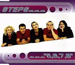 "5,6,7,8" is a song by British group Steps from their debut studio album, Step One (1998). Written by Barry Upton and Steve Crosby and produced by Karl Twigg, Mark Topham and Pete Waterman, the song blends techno-pop and country pop styles. Released as their debut single in November 1997 by Jive and EBUL, it followed the group's formation, which came after each group member responded to a magazine advertisement seeking auditions for a pop band.