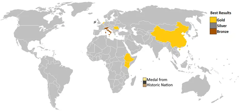 Ethiopia is the most successful nation in the event, having taken six gold medals and fifteen medals in total. The next most successful nation, depending on definition, is either Finland or Kenya. In terms of gold medals, Finland is equal with Ethiopia at six, but has a total of twelve overall medals to Ethiopia's 15. Finland's period of great success in the 1920s and 1930s led to the wide usage of the nickname the Flying Finns; Kaarlo Maaninka was the last Finnish athlete to medal over 5000 m, in 1980. Kenya have won fourteen medals in the 5000 m, second only to Ethiopia in total medals in the event, although John Ngugi and Vivian Cheruiyot are the only Kenyans to have won Olympic gold.