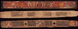The Aṣṭasāhasrikā Prajñāpāramitā Sūtra (Sanskrit: अष्टसाहस्रिका प्रज्ञापारमिता सूत्र; English: The Perfection of Wisdom in Eight Thousand [Lines]) is a Mahāyāna Buddhist sūtra in the category of Prajñāpāramitā sūtra literature. The sūtra's manuscript witnesses date to at least c. 184 BCE – c. 46 BCE, making it among the oldest Buddhist manuscripts in existence.[2][3] The sūtra forms the basis for the expansion and development of the Prajñāpāramitā sūtra literature.[4] In terms of its influence in the development of Buddhist philosophical thought, P.L. Vaidya writes that "all Buddhist writers from Nāgārjuna, Āryadeva, Maitreyanātha, Asaṅga, Vasubandhu, Dignāga, down to Haribhadra concentrated their energies in interpreting Aṣṭasāhasrikā only,"[5] making it of great significance in the development of Madhyāmaka and Yogācāra thought.