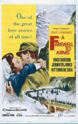 A Farewell to Arms is a 1957 American epic war drama film directed by Charles Vidor. The screenplay by Ben Hecht, based in part on a 1930 play by Laurence Stallings, was the second feature-film adaptation of Ernest Hemingway's 1929 semiautobiographical novel of the same name. It was the last film produced by David O. Selznick.