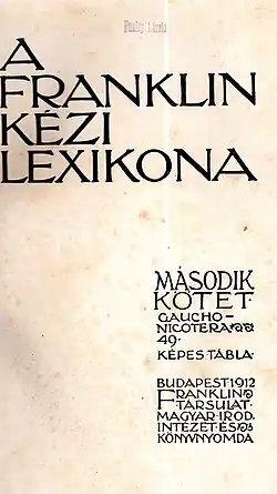 A Franklin kézi lexikona (i.e. actually the Franklin Company Publisher's Hand Lexicon) a larger handbook in Hungarian published at the beginning of the 20th century.