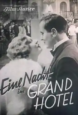 A Night at the Grand Hotel (German: Eine Nacht im Grandhotel) is a 1931 German drama film directed by Max Neufeld and starring Mártha Eggerth, Ulrich Bettac, and Kurt Gerron.[1] It was shot at the Johannisthal Studios in Berlin. The film's sets were designed by the art director Ernö Metzner. A separate French version La Femme de mes rêves was also released.