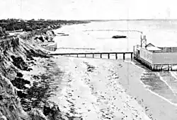 A 1907 photograph showing the portion of Mentone Beach depicted in the painting.