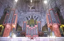 The current instrument was installed in 1939 by Johannes Klais (Bonn) and expanded to 65 stops, which were distributed thereafter in five works. To achieve a balanced sound throughout the cathedral, the parts were distributed through the cathedral: in the northwest and southwest niches of the choir are the works of the High organ, while a swallow's nest organ was hung on the east pillar of the octagon.
