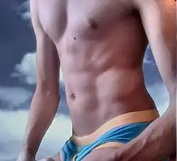 The transverse abdominis muscle is the deepest muscle; therefore, it cannot be touched from the outside. It can greatly affect the body's posture. The internal obliques are also deep and also affect body posture. Both of them are involved in rotation and lateral flexion of the spine and are used to bend and support the spine from the front. The external obliques are more superficial and are also involved in rotation and lateral flexion of the spine. They also stabilize the spine when upright. The rectus abdominis muscle is not the most superficial abdominal muscle. The tendonous sheath extending from the external obliques cover the rectus abdominis. The rectus abdominis is the muscle that very fit people develop into "six-pack" abs, though there are five vertical sections on each side. The two bottom sections are just above the pubic bone and usually not visible. The rectus abdominals' function is to bend one's back forward (flexion). The main work of the abdominal muscles is to bend the spine forward when contracting concentrically.[5]