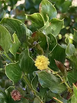 Acacia awestoniana, commonly known as the Stirling Range wattle,[5] is a species of flowering plant in the family Fabaceae and is endemic to a restricted area in the south-west of Western Australia. It is a spreading, sticky shrub with wavy, widely elliptic to elliptic, phyllodes, spherical heads of golden-yellow flowers, and narrowly oblong pods up to 22 mm (0.87 in) long.