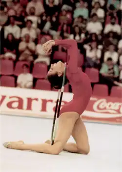 In June 1989, at the Junior European Championships in Tenerife, she took 5th place in the general classification and won team bronze together with Rosabel Espinosa and Edi Moreno. In the apparatus finals she was fifth with ball, and fourth with hoop and rope, she also obtained silver with clubs.[5] She then moved to the senior category, becoming once again Spanish champion in Murcia in the first category, obtaining the gold medal in all the finals. Selected for the World Championships in Sarajevo, she was 12th in the All-Around, 8th in the hoop final and also won the team bronze medal along Ana Bautista and Silvia Yustos.[6] In the Ibero-American Games she was first in the All-Around and won the gold medal in ball and hoop.