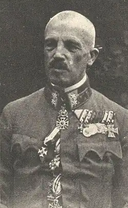 - ^ He was appointed to the rank of Feldmarschall-Leutnant in the reserve of the Royal Hungarian Army, after having held the rank of Generalmajor by the time he retired from Austro-Hungarian service.
