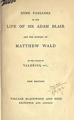 Adam Blair is an 1822 novel by the Scottish writer John Gibson Lockhart.[1] Lockhart, the son-in-law and biographer of Walter Scott, produced four novels in the early 1820s. In this a Church of Scotland minister is accused of adultery. Lockhart's biographer Andrew Lang praised the novel, comparing its theme to the later 1850 novel The Scarlet Letter by Nathaniel Hawthorne, as did Henry James.[2] [3][4] Its full title is Some Passages in the Life of Mr Adam Blair.