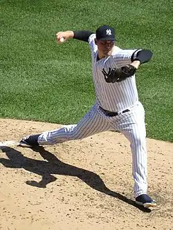 On January 24, 2019, the New York Yankees signed Ottavino to a three-year contract worth $27 million.[25] Ottavino became the first Yankee in team history to wear uniform number 0, the last single-digit number not retired by the Yankees.[26] During the 2019 season, Ottavino appeared in 73 games for the Yankees, all in relief, pitching to a 6–5 record with 1.90 ERA and 88 strikeouts in 66+1⁄3 innings pitched.[27] During the shortened 2020 season, he made 24 appearances, all in relief, with a 5.89 ERA and 2–3 record with 25 strikeouts in 18+1⁄3 innings pitched.[27]