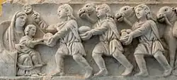 Adoration of the Child Jesus by the three wise men or Magi; Sarcophagus relief (4th century), Vatican